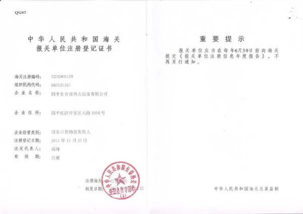 海關(guān)報關(guān)單位注冊登記證書